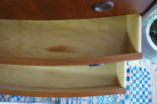 内部の構造も木製で、50年ほどの月日の経過により、引出しの側面、それを支える本体側のガイドがすり減っていることがあります。