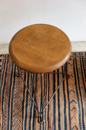 シンプルな鉄の丸棒とパイン系座面の組合せのスツール・・・