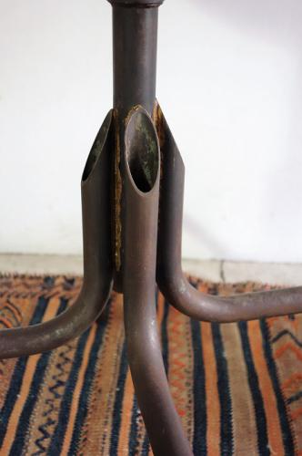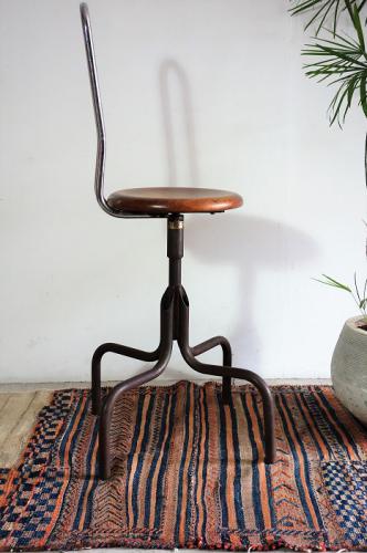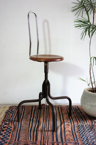 座面は回すことで高さ調整が可能です。木部はラッカーで仕上げました。本体は、錆跡を残す感じで