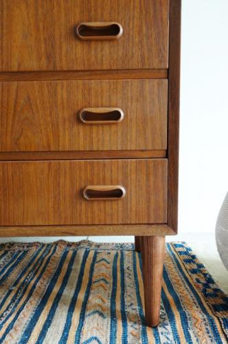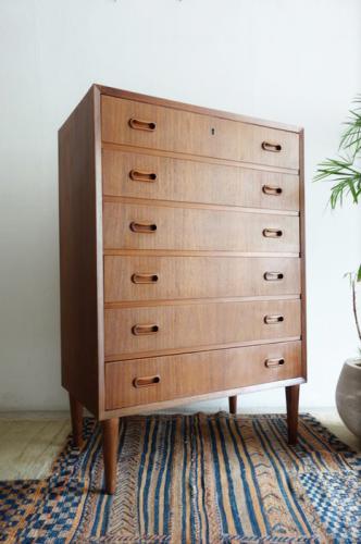 デンマ-ク製の定番6段チェストです。。材質はチ-ク材。引き出し内部の底板も新しく交換済み。 小振りで設置し易いサイズです。 横幅(W)720mm ×奥行(D)395mm ×高さ(H)1050mm 【カントリー】Denmark 【価格】Sold/完売しました