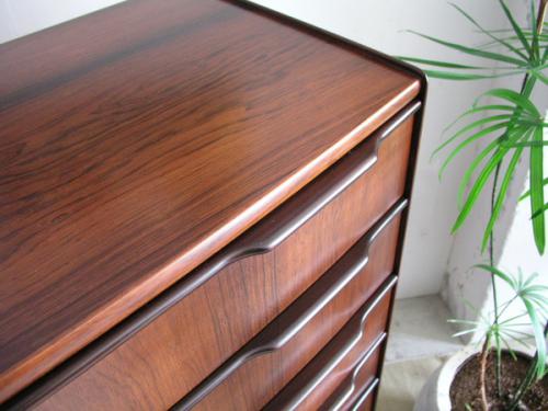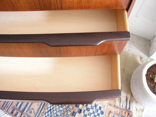 材質は・・・本体はローズウッド突板、脚はローズウッドの無垢材、ハンドルは恐らく