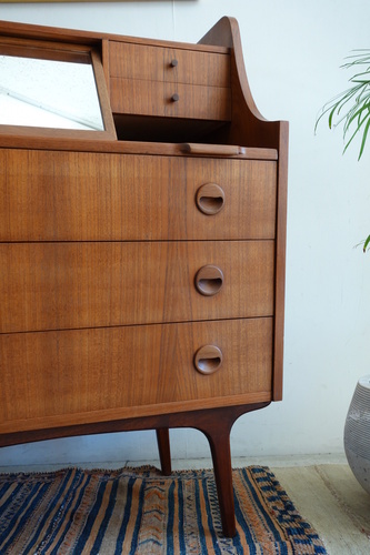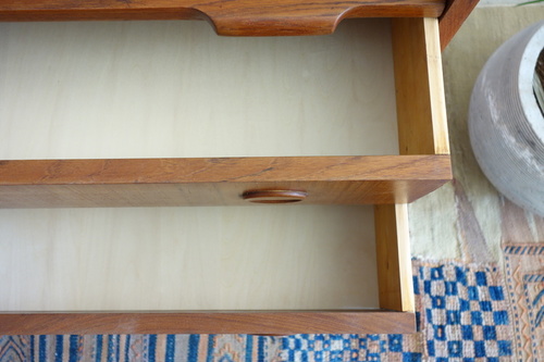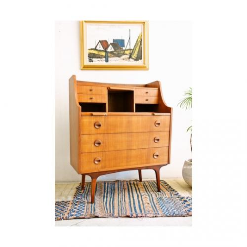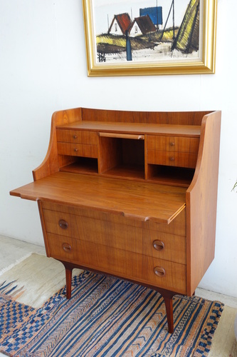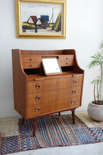 デンマ-ク製のビュ-ロ-です。材質はチ-ク材。上段中央に小型の鏡が収納されています。