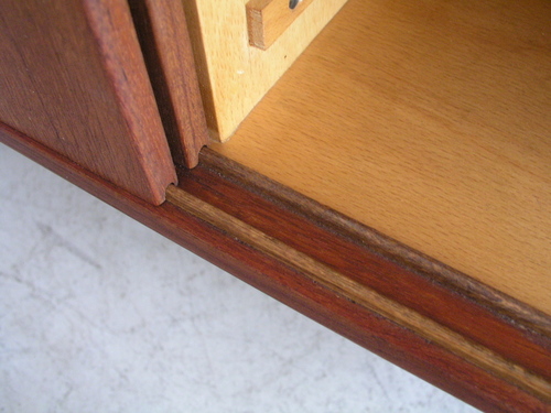 こちらのサイドボ-ドは本体がチ-ク、脚部がオ-ク材のコンビネ-ション。
