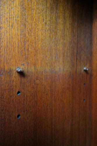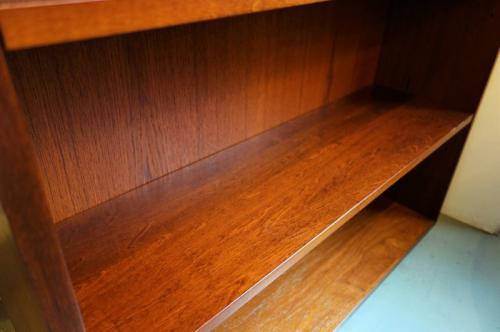 デンマ-クにて買い求めました中型サイズのブックシェルフです。 材質はチ-ク材。棚板は3段階で高さ調節が可能です。 奥行が250mmと薄く、あまり場所を必要としません。 左右に連結用の補修跡が2つずつありますが、 ご使用に問題はありません。 横幅 (W)900mm ×奥行(D)250mm ×高さ(H)910mm 【カントリー】Denmark 【価格】完売しました