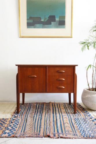 デンマ-クにて買い付けましたサイドチェストです。 材質はチ-ク材。左側の引き出しは1段ですが深さがあり、 長い物も収納可能。こちら背面も仕上げ済みです。 横幅(W)745 ×奥行(D)415 ×高さ(H)595 カントリー】Denmark 【価格】完売しました