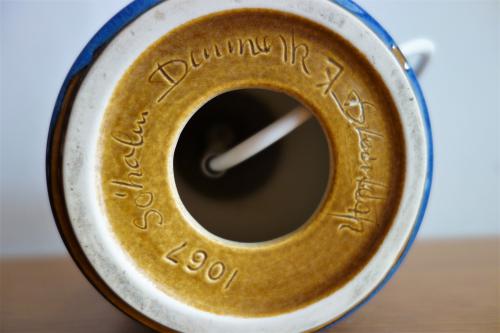 1835年にデンマークの小島 "Bornholm" で、"Wolffsen"家によって設立された家族経営の窯元です。残念ながら1996年にその歴史を閉じていますが、多くの作品を世に残しています。伝統的な柄と色使いで、シンプルかつ上品なデザインの物が多いのですが、今回の物はモダンで、美しい輝きを持つ、少し珍しいスタイルかもしれません。灯りを点けると、陶器全体に光が反射し、何とも言えない輝きを放ちます。