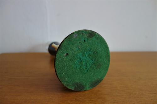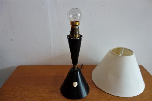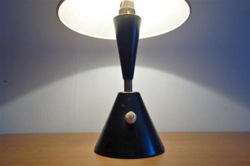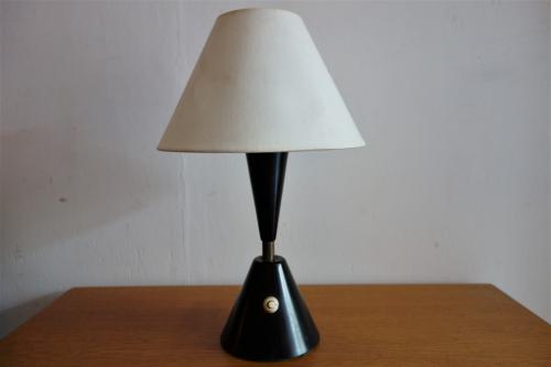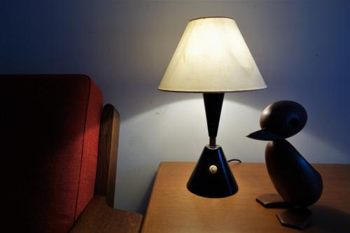 アールデコのデザインを思い起こさせるようなデザインと色使い。小さいながらも、存在感のあるランプです。