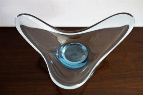 今回のボウルは、ホルムガードを代表する作品の一つで、ミッドセンチェリーのアートブックにも必ずと言ってよいほど紹介されている1点です。中央から3方向に延びる曲線が、水滴を落とした水面のような形状で、その曲線が先端から中央に向かって、透明感のある美しい青のグラデーションとなっています。