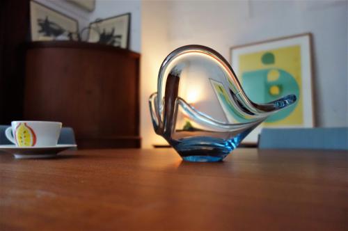 北欧には印象的な雑貨が沢山あり「北欧雑貨」という括りがあるほどですが、そのイメージは陶器や布、木材の物が多いのですが、ガラスも有名です。「スカンジナビアグラス」と言われ、コレクターも多いです。色鮮やかで独特なフォルムが特徴なのですが、この「Holmegaard/ホルムガード」のガラス製品は、そのイメージを大きく変えました。1940年代からHolmegarrd社のデザイナーとして活躍した「Per Lutken」の作品は、薄いブルーをはじめ、グリーン、乳白色といった色鮮やかとは違った趣のある色使いと丸みを帯びた独特のデザインで、これまでのイタリアのベネチアンのような豪華なグラス製品という波に一線を画しています。