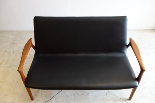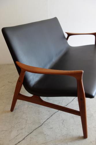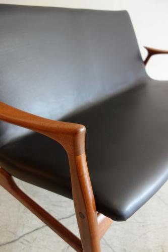 「Arne Hovmand Olsen」・・・彼の作品はダイニングチェアーに良く見られますが、ソファとなると、ほとんどマーケットで見ることはできません。一人掛けのソファ(イージーチェアー)は、ごくまれに見ますが、2人掛け、3人掛けとなると、かなり希少と言えます。木材を削り出して作る彼の作品は、材料を多く必要とするので、ソファでは割が合わなかったのかもしれません。