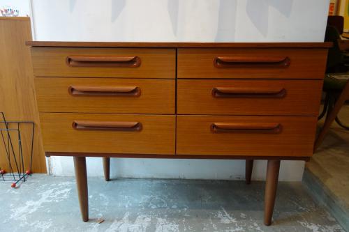 Item : 6drawers Chest/SideboardCountry : the UK Designer/Maker : Unknown/Schreiber Size : W995/D430/H720mm Price : Sold/完売いたしました 現状、メンテナンス前の状態です。 仕上げはラッカーでの仕上げになります。