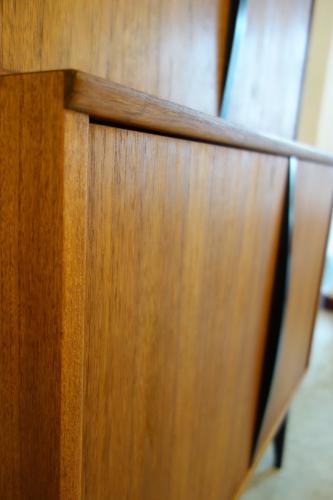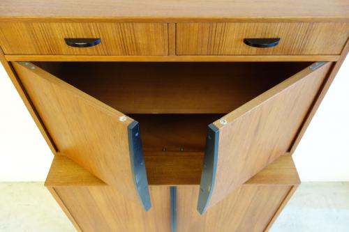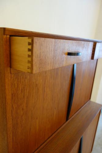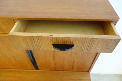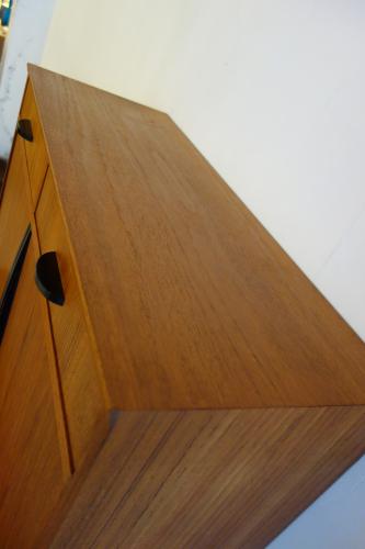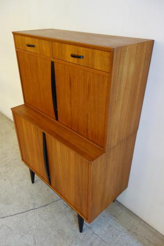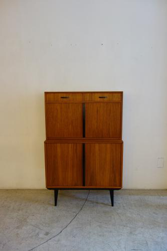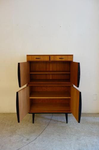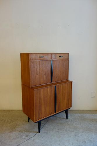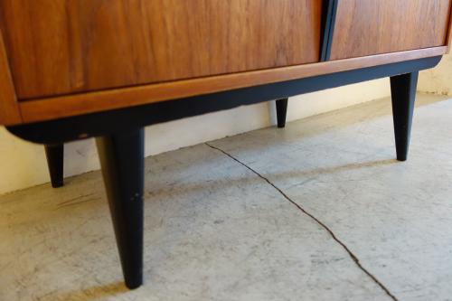 コンパクトな家具ですが、収納力もあり、またデザインもデンマークには無い独特なパーツ使いとなっています。やはり特徴的なのは黒く塗装されたハンドルと脚・・・デンマークの家具には無いデザインです。また、上下は別パーツで、乗せるタイプの家具ですので、それぞれを別に設置することも可能です。