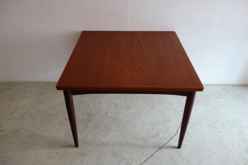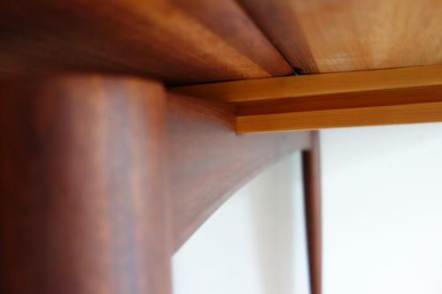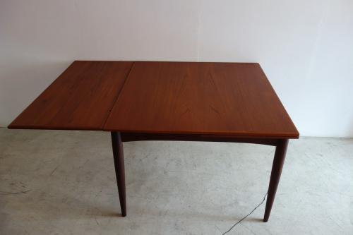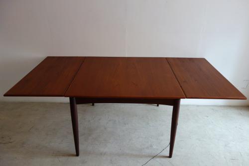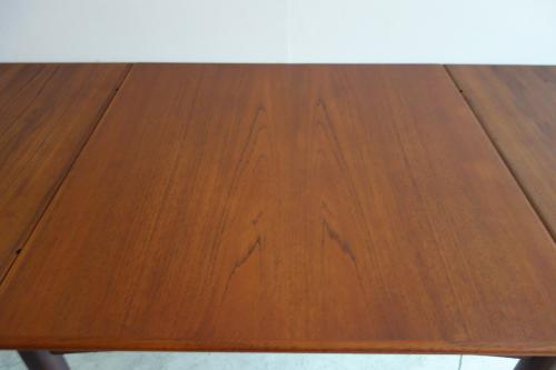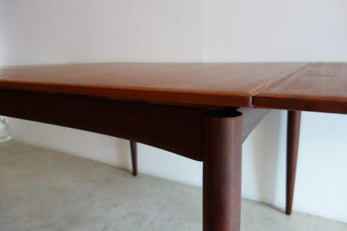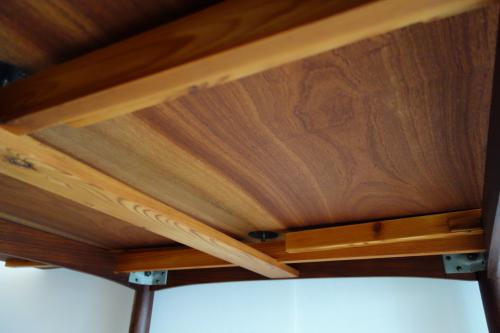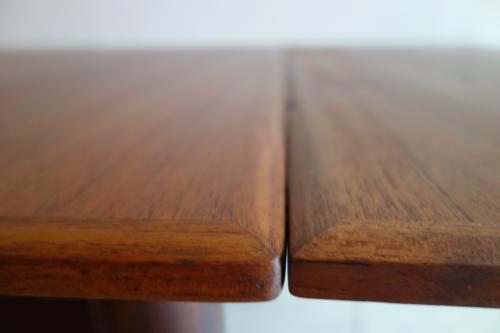 このダイニングテーブル、かなり造りが良く、天板はチーク材、脚と天板を支える幕板はマホガニーの無垢材が使用されています。エクステンションを支えるパーツも、溝が掘ってあり、ぶれない構造になっています。