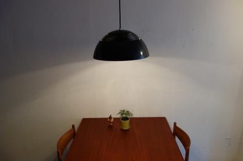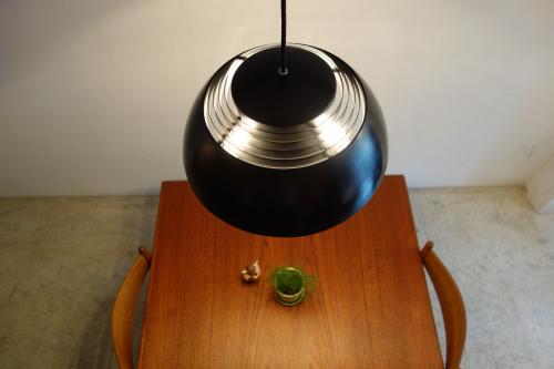 一見、シンプルな半円のシェードですが、計算しつくされたデザインで、3つの電球を取り付け、明るさを確保しながらも、柔らかで、絶妙な光をお部屋全体に広げてくれます。もともとデンマークの一般的なランプは、明るさよりも雰囲気を重視していますので、日本のライフスタイルでは、暗すぎるという傾向にありますが、この照明は、その辺りもクリアーしています。