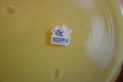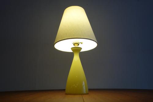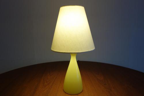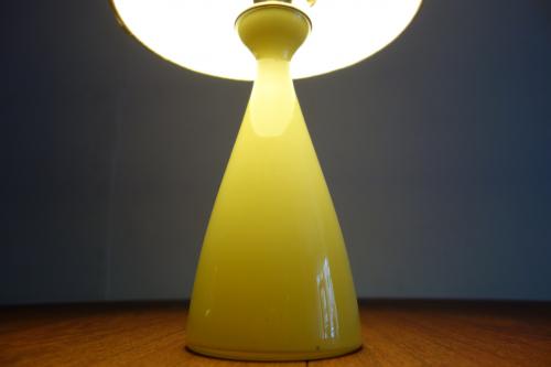 デンマーク製の黄色いガラスベースのテーブルランプです。