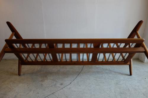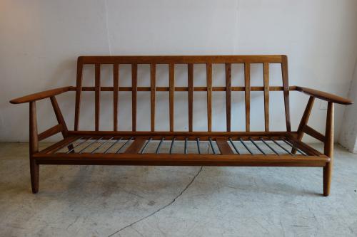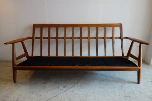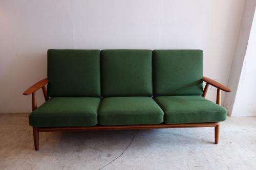 "Meister" Hans Wegner/ハンス・ウェグナーが1955年にデザインし、GETAMA社より販売されたソファです。現在では、その贅沢な木材の使い方や、コストのかかる組み方から、製造されず、ヴィンテージでしか、手に入らなくなりました。