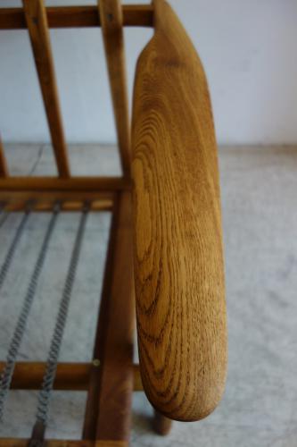 "Meister" Hans Wegner/ハンス・ウェグナーが1955年にデザインし、GETAMA社より販売されたソファシリーズの一人掛けです。現在では、その贅沢な木材の使い方や、コストのかかる組み方から、製造されず、ヴィンテージでしか、手に入らなくなりました。