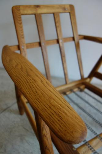 GE290と共に、有名なシリーズですが、圧倒的に数が少なく、希少性が高い椅子です。それぞれに特徴があるのですが、このGE240の大きな特徴の一つが、サイズです。GE290とクッションサイズは同じなのですが、フレームが小さく、奥行きも80cm以下なのですが、しっかりと安楽性も保っています。シートハイは38cmと、GE290とほぼ変わらないのですが、低く感じるのは、勾配が緩やかだからかもしれません。