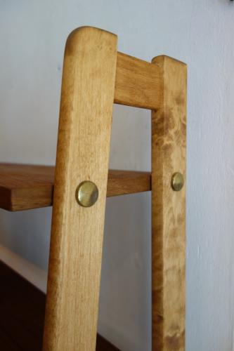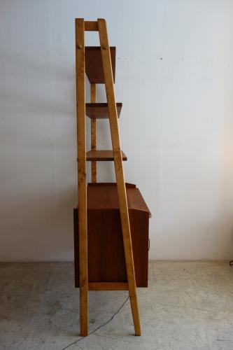 横に付いた脚がそのまま梯子状に延び、シェルフの棚受けになるタイプです。