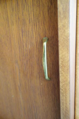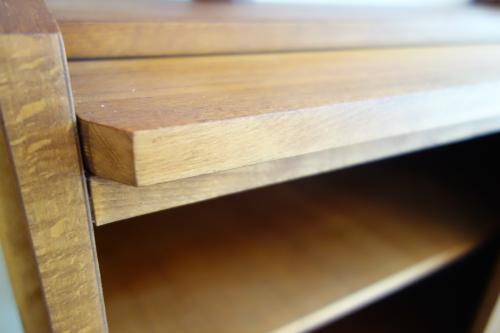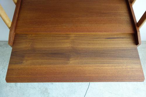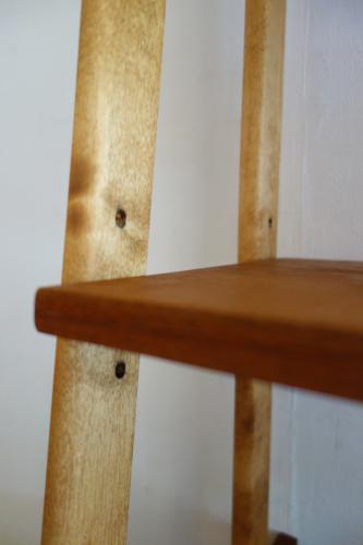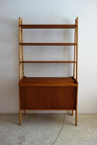 チーク材とブナ材が使われたコントラストの美しい家具です。棚板は一番上が固定式、中2枚はともに可動式となっています。
