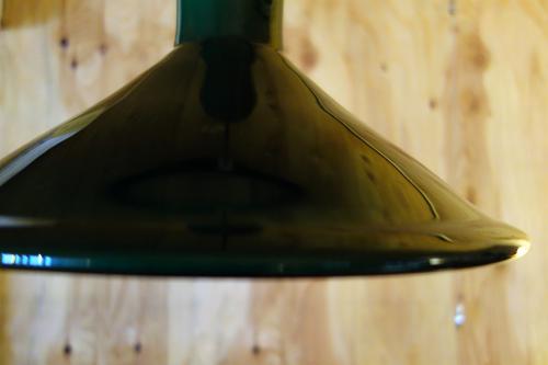 北欧には印象的な雑貨が沢山あり「北欧雑貨」という括りがあるほどですが、そのイメージは陶器や布、木材の物が多いのですが、ガラスも有名です。「スカンジナビアグラス」と言われ、コレクターも多いです。色鮮やかで独特なフォルムが特徴なのですが、この「Holmegaard/ホルムガード」のガラス製品は、そのイメージを大きく変えました。元々、このHolmegarrd社も一般的な「工業製品」が主で、シンプルかつ、味気ない物が多かったのですが、1940年代から「Per Lutken」がデザインを手掛けるようになってから、シンプルでありながらモダンなデザインへと変わりました。その特徴的な物が「色」にあります。薄いブルーや白が多く、今回のような濃いグリーンの物は珍しいです。