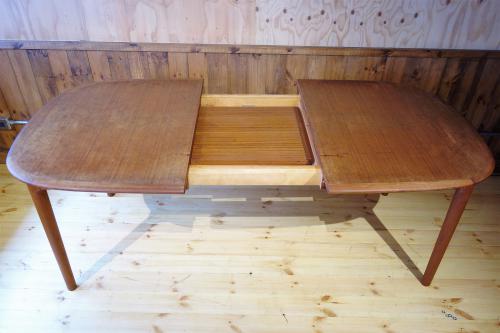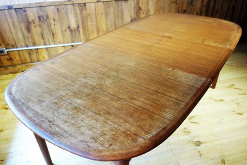デンマークの家具メーカー「GUDME」社のオーバル型ダイニングテーブルです。天板はチーク突板、脚・幕板はアフリカンチーク材で作られています。