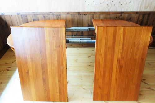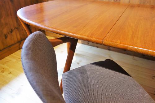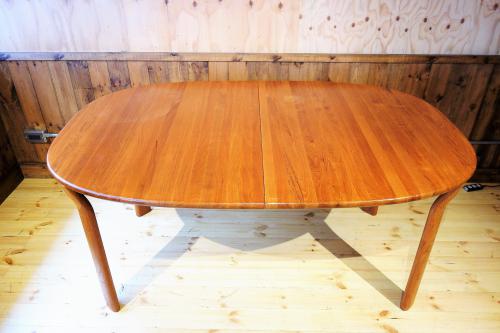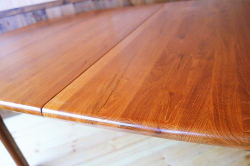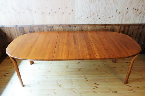 デンマークの家具メーカー「Snedkergaarden」社のオーバル型ダイニングテーブルです。素材はチーク集成材ですが、通常の集成材より幅広で、横繋ぎのみ、縦方向には繋ぎはありませんので、木目も綺麗です。