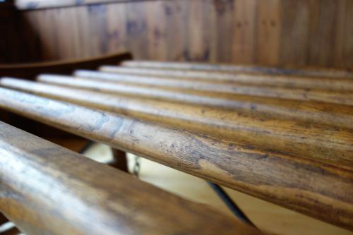 素材はオールドアメリカンオーク無垢材とパーツは鉄を使用していますので、かなりハードなイメージです。仕上げは敢えて洗浄後にオイルのみで仕上げていますので、当時の傷やダメージはそのままに残しています。