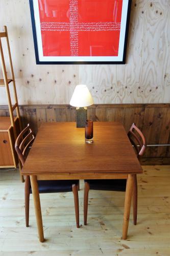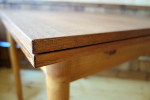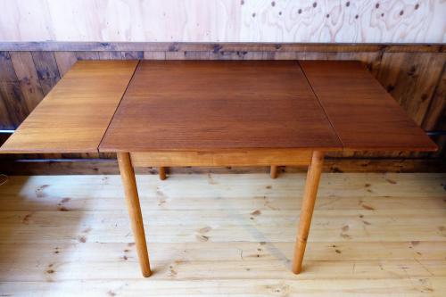 デンマーク製の小振りな「伸張式正方形」ダイニングテーブルです。
