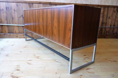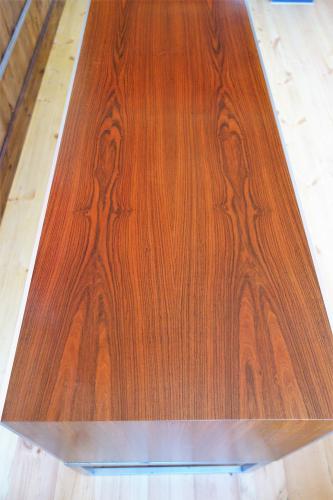 Jacob Jensenらしいデザインで、ヘアライン仕上げのステンレス脚とエッジにぐろいローズウッドの本体が見事な美しさを演出しています。