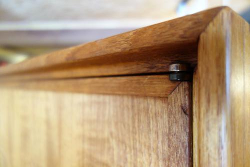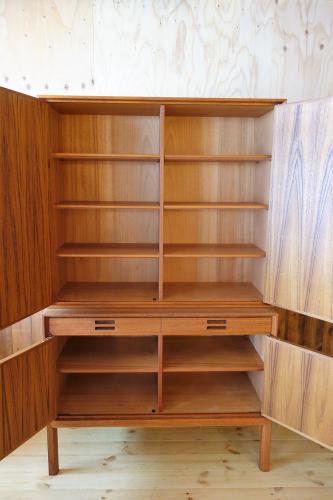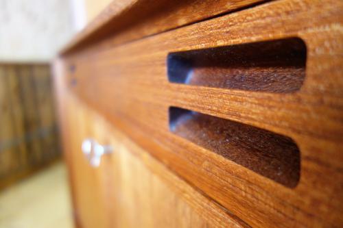 素材も、チーク材を贅沢に使っていて、高級感があります。デザインも、小口や扉周りの細工、真鍮の留め金や、抽斗の掘り込みなど、他のスウェーデンの家具とは違い、デンマークの家具に近い物があります。