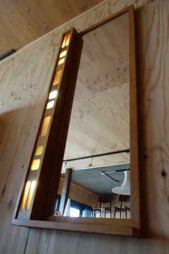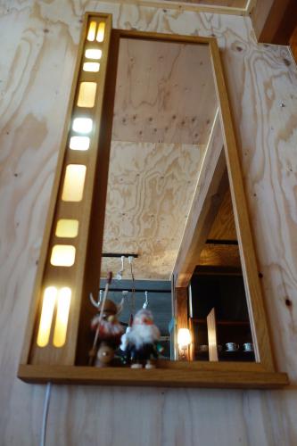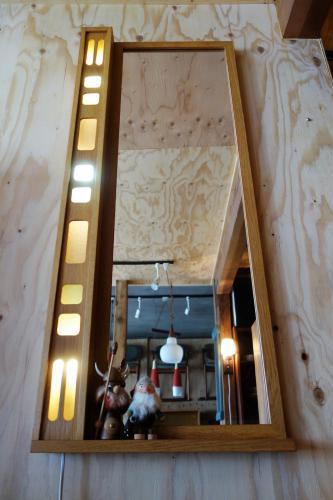 スウェーデンのグラスメーカー「Eriksmalaglas」社製の照明付き壁掛け鏡です。
