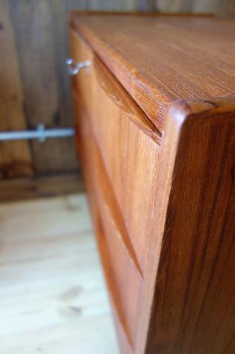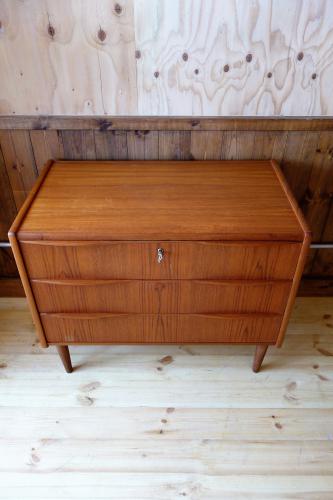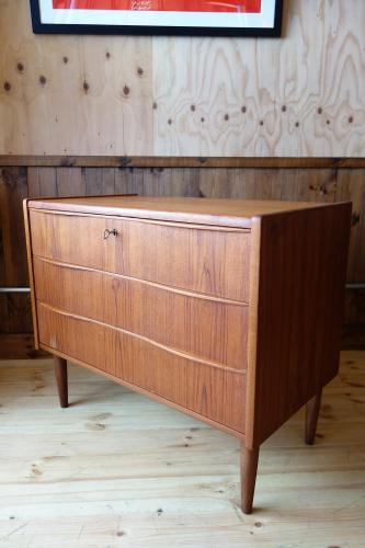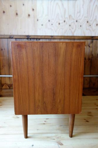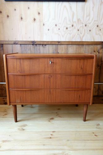 北欧家具のイメージとして、最初に思い浮かぶのが、椅子と小振りなチェストではないでしょうか。椅子にしても、チェストにしても、以前は大量にあったのですが、最近では、デザイナー家具以外では、あまり良い物を見かけなくなってきました。特に中型サイズ以下のチェストは数が減り、状態や造りが良い物を探すのが困難な状況です・・・チェストを購入する場合、最も重要なのが抽斗のバランスです。長年使用していると、オーナーのクセがつき、抽斗内部の木部が少しずつ削れ、バランスが悪くなり、いずれ引き出しが開かなくなってきますので、注意が必要です。あとは、抽斗内部の臭いや底板の汚れも必ずチェックした方が良いです。