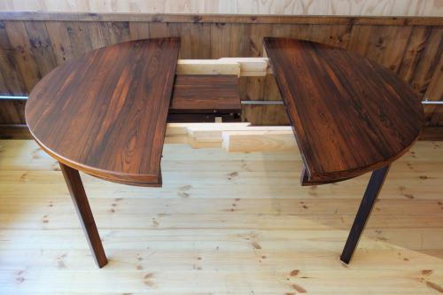 ローズウッドの円形エクステンション式ダイニングテーブルです。