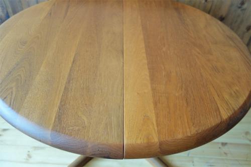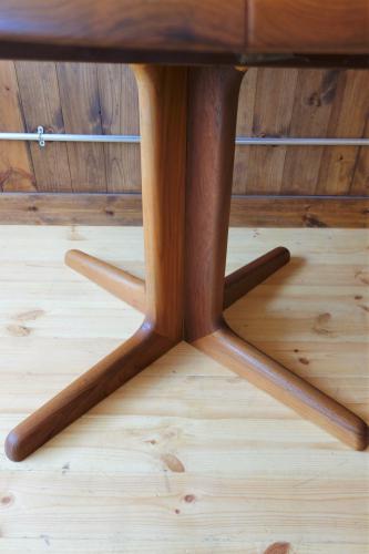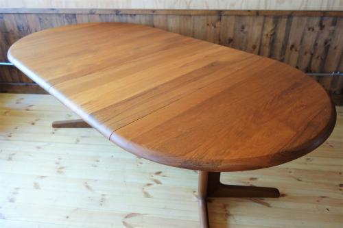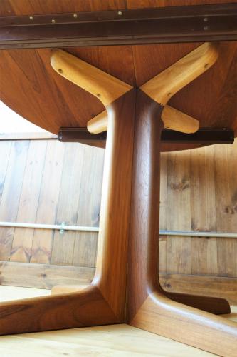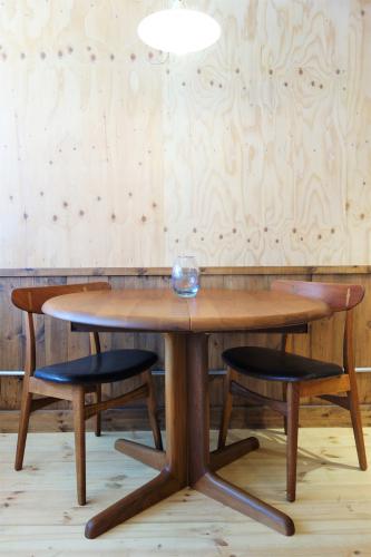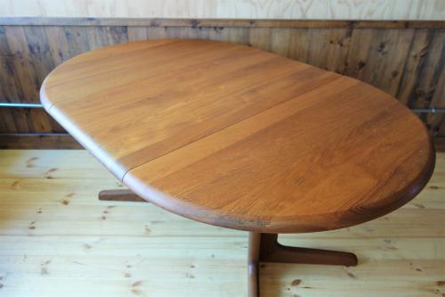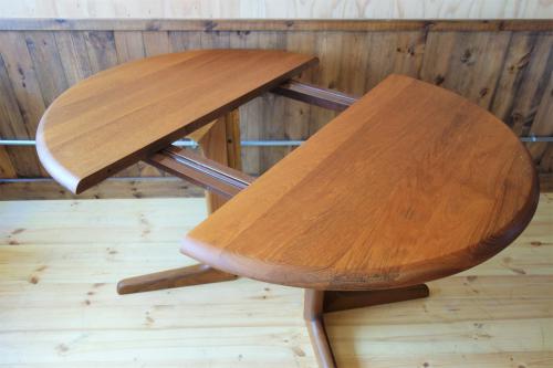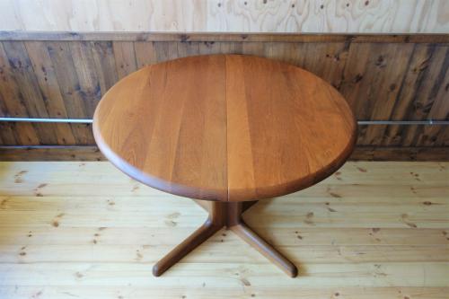 デンマーク製の小振りなチーク無垢材円形エクステンション式ダイニングテーブルです。