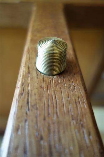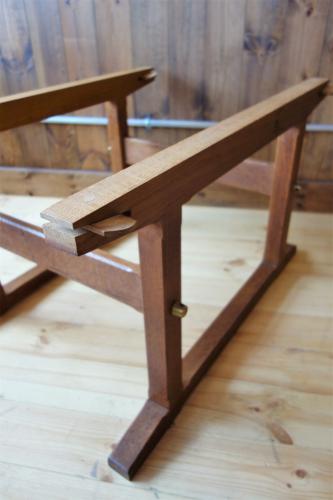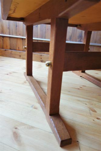 この大型のタイルトップテーブルは1950年代にNissensTævarefabrikによって製造されたものです。Mogensenを思わせるような重厚なオーク材のフレームは真鍮のナットで組まれた「組み立て式」になっています。テーブルトップはJHQらしい「木材のパーツ」で固定され、取り外すこともできます。トップのタイルも、マルチな工業デザイナーとして活躍したJHQらしいデザインになっています。