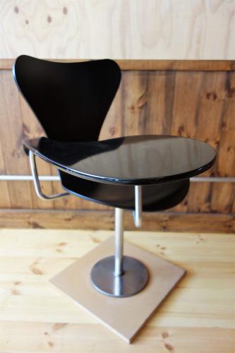 恐らく、デンマークで最も有名なプロダクトデザイナーであり、建築家である巨匠 Arne Jacobsen の椅子で最も「売れた」椅子 "Seven Chair"のテーブル付き床固定型になります。