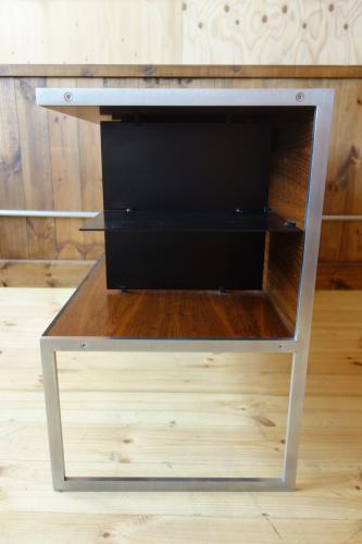 鉄製の間仕切りは取り外し可能で、様々な用途に、AV機器に対応できます。本体はローズウッドの美しさを保つため、半艶クリアラッカーで仕上げました。