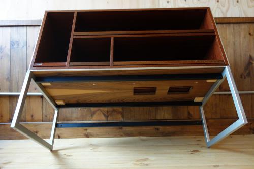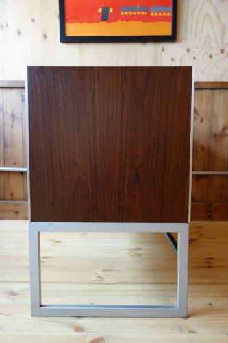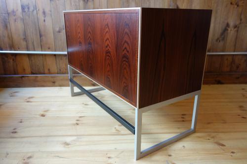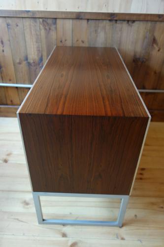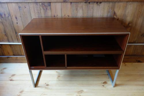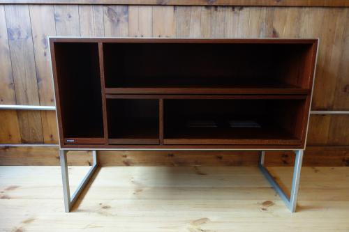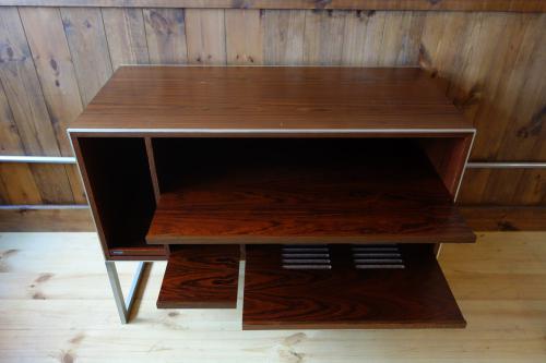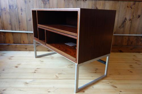 シンプルながら機能的で、重いステレオも、十分に支える強固な造りになっています。Jacob Jensenらしいデザインで、ヘアライン仕上げのステンレス脚とエッジにぐろいブラジリアンローズウッドの本体が見事な美しさを演出しています。