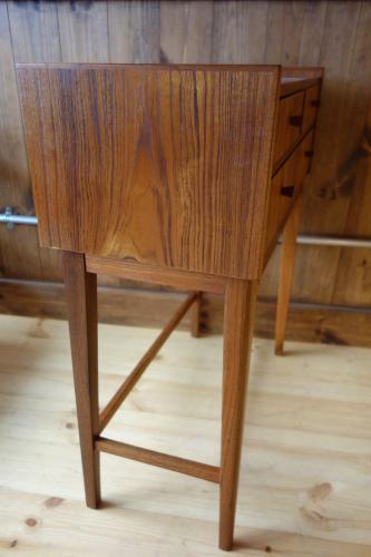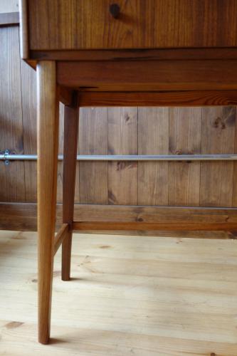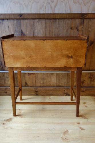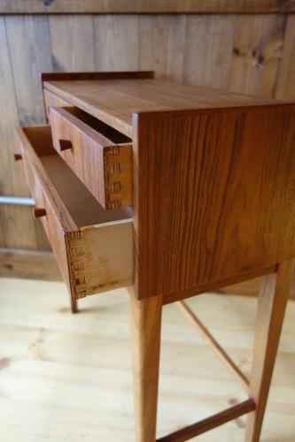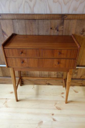 以前は、大量にあった「小さな家具」も、最近では、デザイナー家具以外では、あまり良い物を見かけなくなってきました。特に元々、生産数が少なかったであろう、小さなサイズの家具は数が減り、状態や造りが良い物を探すのが困難な状況です・・・こうした引き出し付きの家具を購入する場合、最も重要なのが抽斗のバランスです。長年使用していると、オーナーのクセがつき、抽斗内部の木部が少しずつ削れ、バランスが悪くなり、いずれ引き出しが開かなくなってきますので、注意が必要です。あとは、抽斗内部の臭いや底板の汚れも必ずチェックした方が良いです。