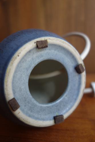 メーカーは不明ですが、色合いや陶器の質感から、Søholm社の物ではないかと思われます。いずれにしても、非常に美しいフォルムと、色合いの陶器で、特に艶のあるターコイズブルーは、印象的です。サイズも小さく、ちょっとしたお部屋のアクセントになります。