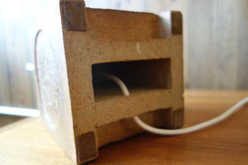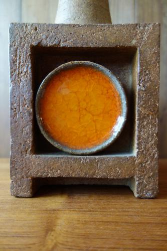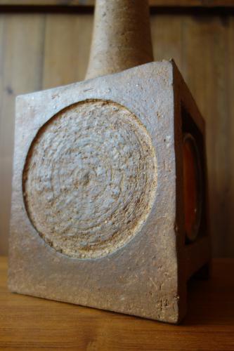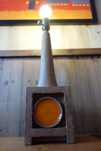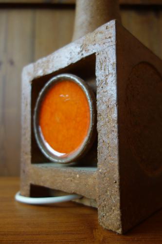 窯元や年代など詳細は不明ですが、非常に美しい土と鮮やかな釉薬が対照的で、モダンなデザインのベースです。シェードが無いのですが、そのまま床に置いても美しいと思います。
