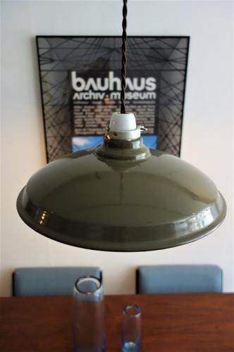 アメリカらしい工業系のデザインで、状態も非常に良いです。大き過ぎず、小さ過ぎず、色も柔らかなカーキ色ですので、主張が強すぎず、お部屋になじむと思います。電球ソケットを挟み込むように支えるパーツなどを見ていると北欧にはない「アメリカ」のプロダクツと感じさせます。インダストリアル系やブルックリンスタイルのインテリアはもちろん、北欧モダン、和室にも合います。