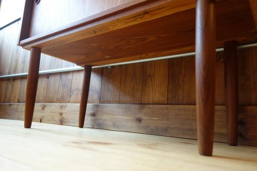 本体はチーク「板目」突板、足はチーク無垢材のオイル仕上げとなっています。