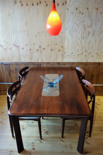 Bang & Olufsenの家具を思い起こすような洗練されたこの家具は、Johannes Andersenの家具を手掛ける「Uldum Mobelfanrik」社によるもので、恐らくはこのテーブルもJohannes Andersenのデザインなのではないかと思います。