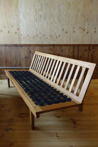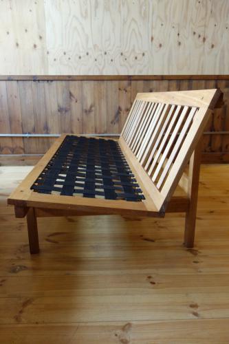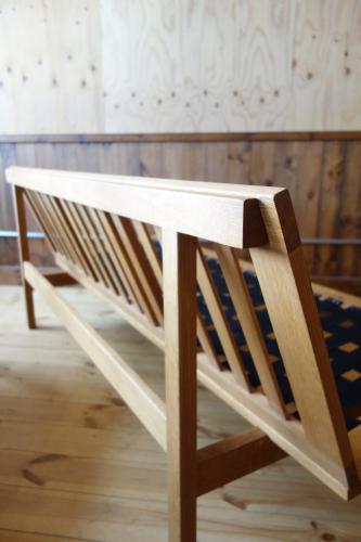 オールドオークの角材が直線的にシンプルに組まれているだけの構造・・・そこがモーエンセンにしか出せない美しさです。フレームはオイルのみで仕上げ済みですので、お好きな生地でクッションを作れば、完成です。