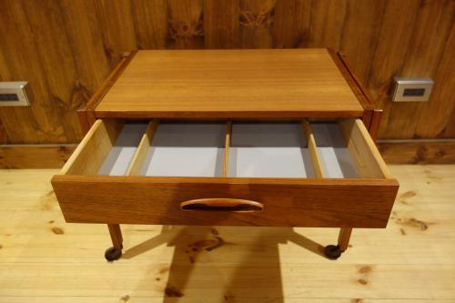 昔はよく出てきましたが、最近では状態が良く、造りも良い「Sweing Table」(ミシン台)と呼ばれるキャスター付きのテーブルは、中々出会えません。