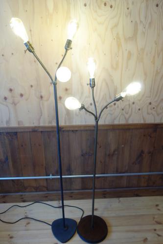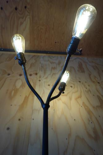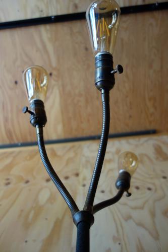 古い三角の鉄でできたベースが、かなり渋い色を出しています。そこから延びる支柱から分かれる蛇腹、1920~30年代に流行ったスタイルになりますが、詳細は不明。とにかく、他にはないヴィンテージのインダストリアルでしか味わえない照明です。様々なスタイルのインテリアと合います。