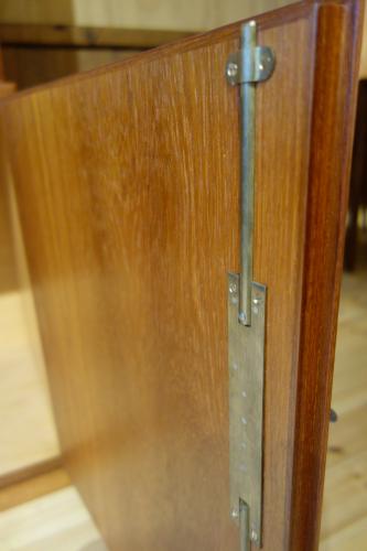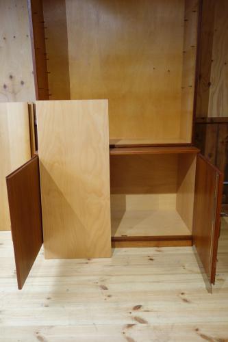 このSoborg Mobeler社から出ているキャビネット、シェルフ、ビューローは、様々なデザイン、素材、用途が用意されているのですが、全て幅が1,000mm(1m)なので、組み合わせが可能です。実際、今回の物も、別々に買い付けたものです。微妙な色の違いなどございますが、「Fusionクオリティー」で、外も中も後ろも底面も、丁寧に仕上げていき、オイルのみで色も近づけていきます。