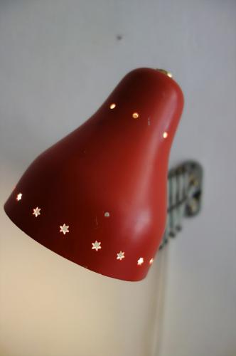 赤いシェードには、星形にくりぬかれたパターンがあり、灯りをつけると、